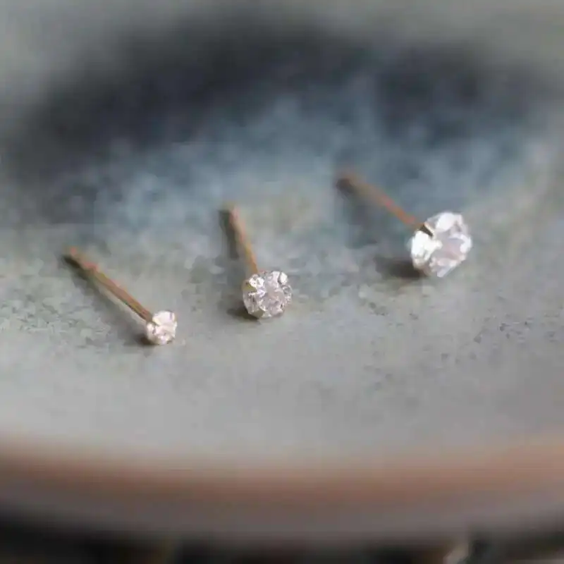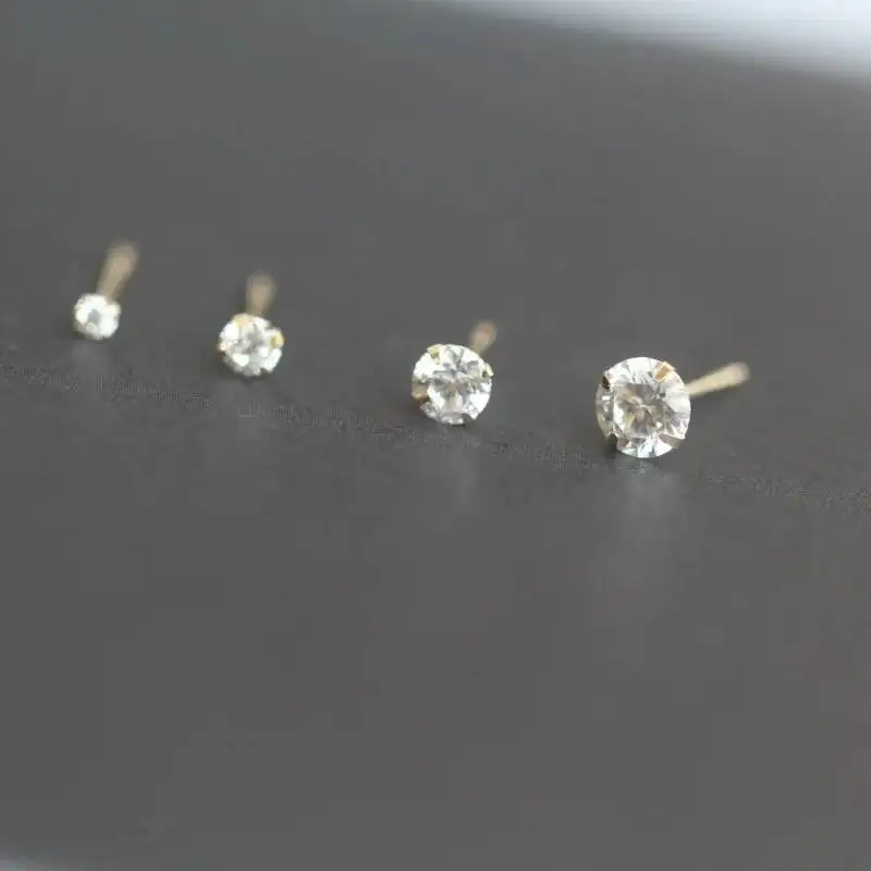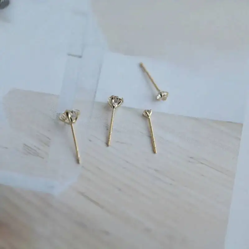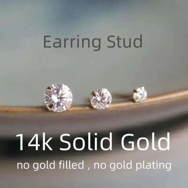 14K Gold Crystal Earring for Women, Mini Dainty Simple Style, Small Stud Earrings, Jewelry Gift, kj50