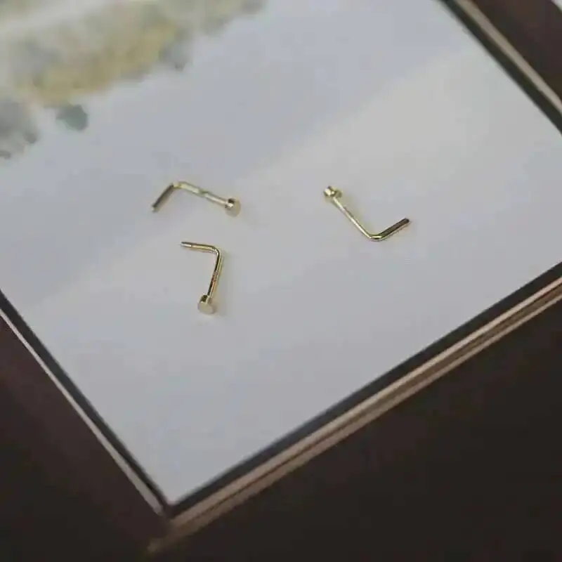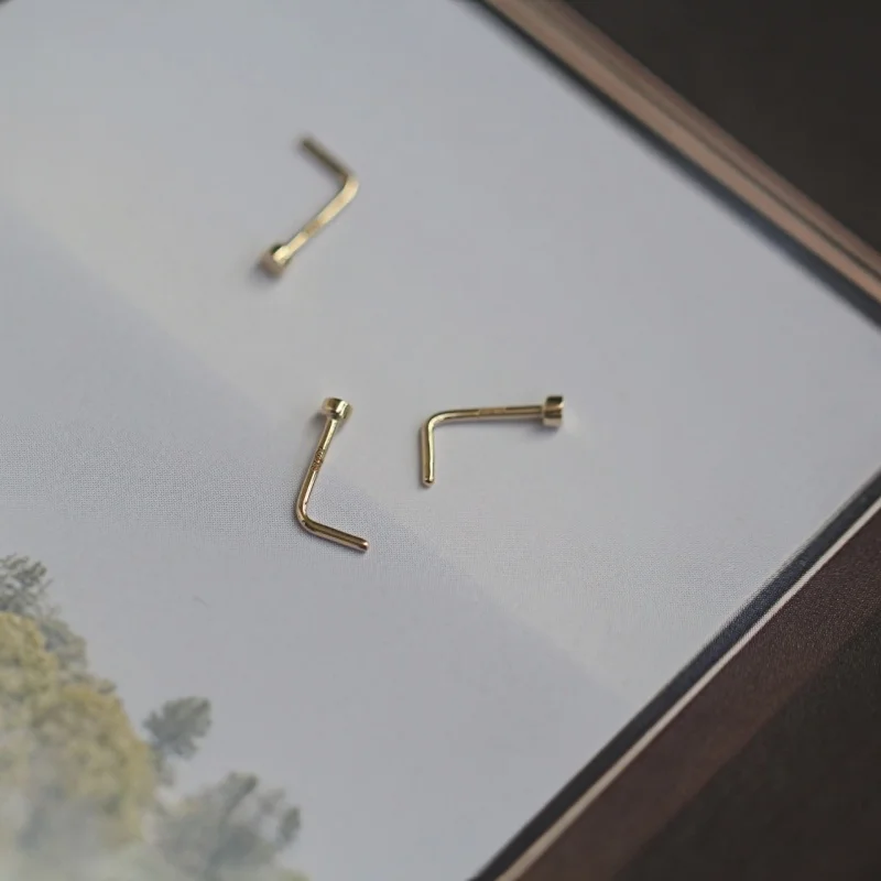 14K Gold L-Shaped Ring Hypoallergenic & Stylish Nose Jewelry | Comfort Fit for Everyday Wear kj462