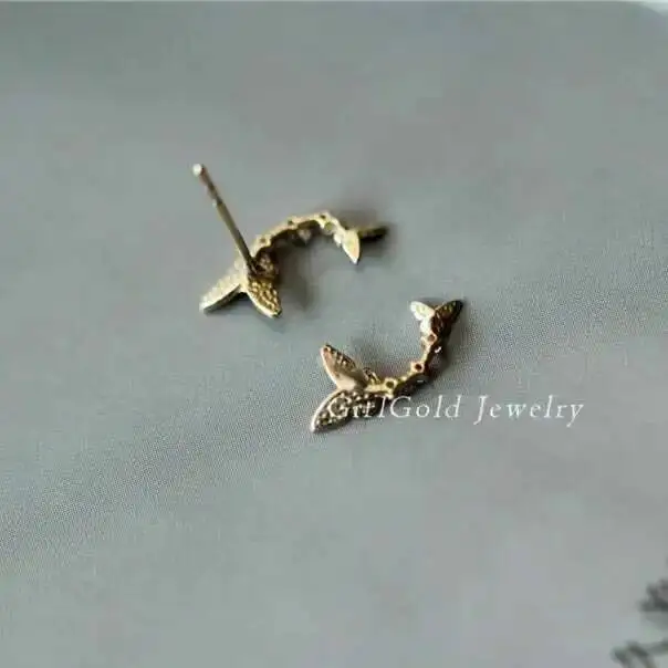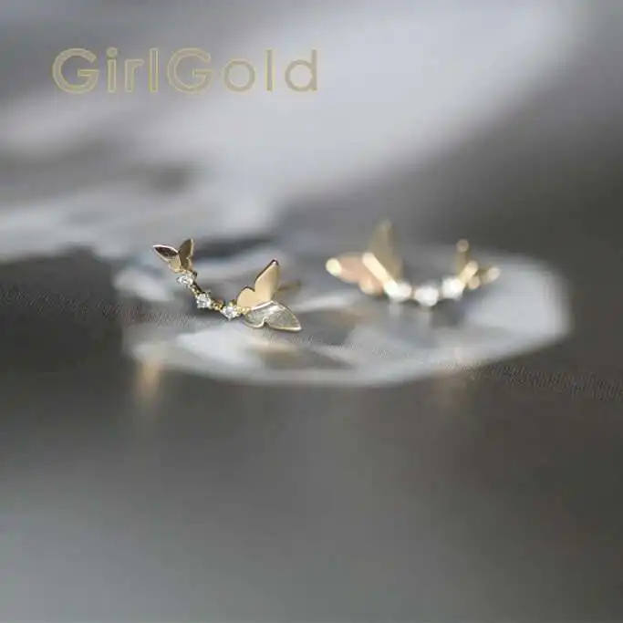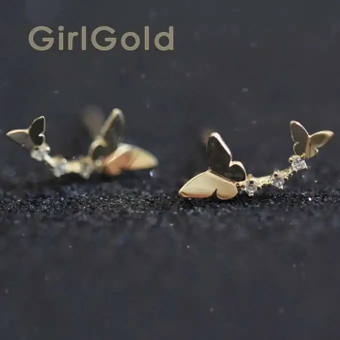 14K Gold Mini Dainty Butterfly Crystal Stud Earrings, Hypoallergenic, Trendy Gift for Her, kj45