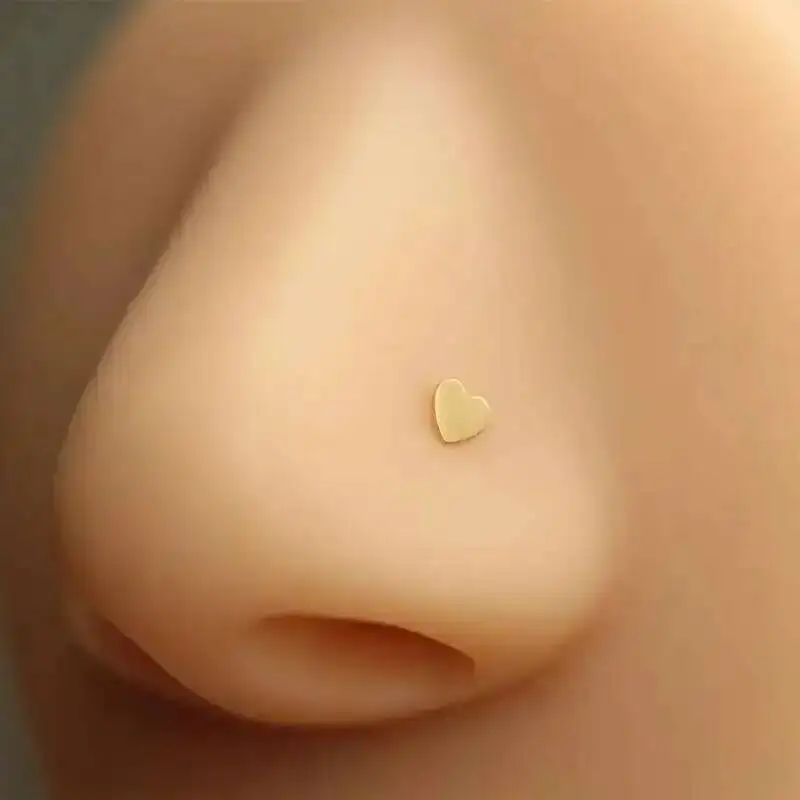 14K Gold Ring Stud, 20 Gauge, L Shaped Nose Piercing Jewelry for Women and Men, kj464