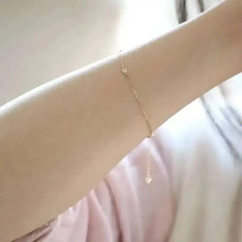14K Real Solid Gold Crystal Charm Bracelet, Minimal Simple Style, Minimalist Jewelry, kj181