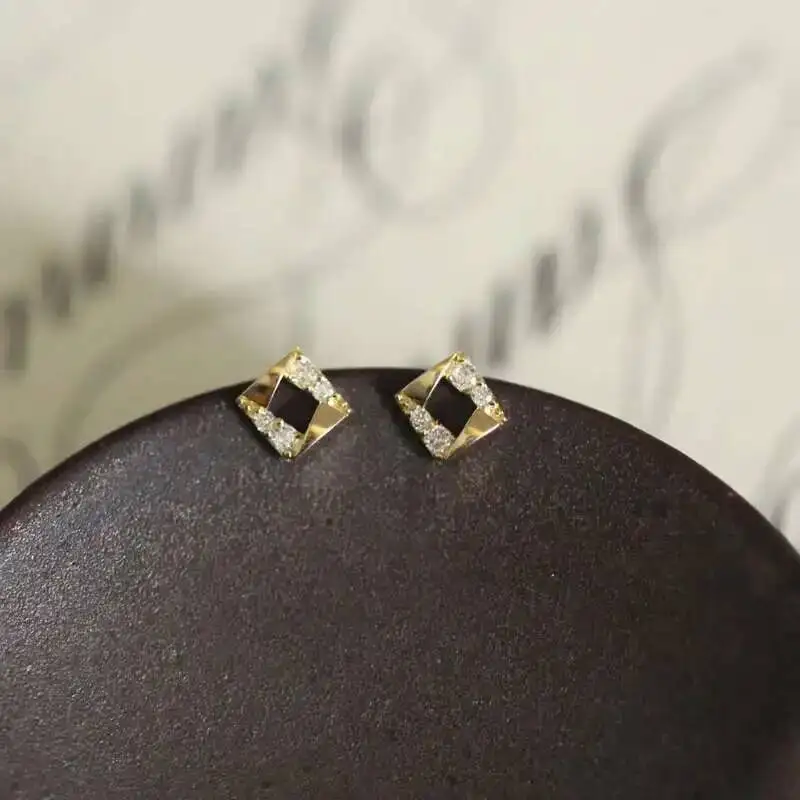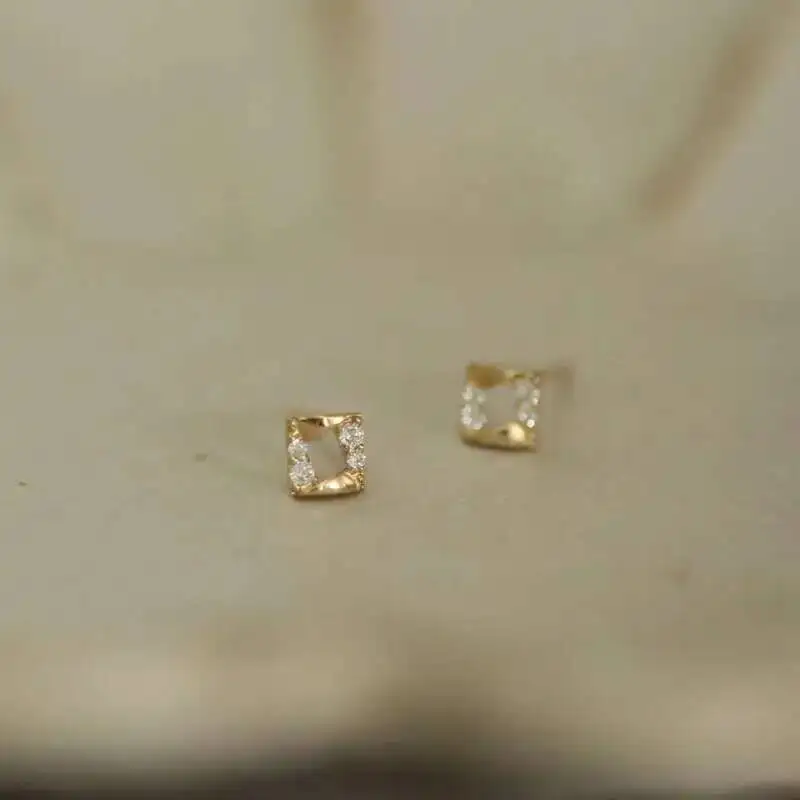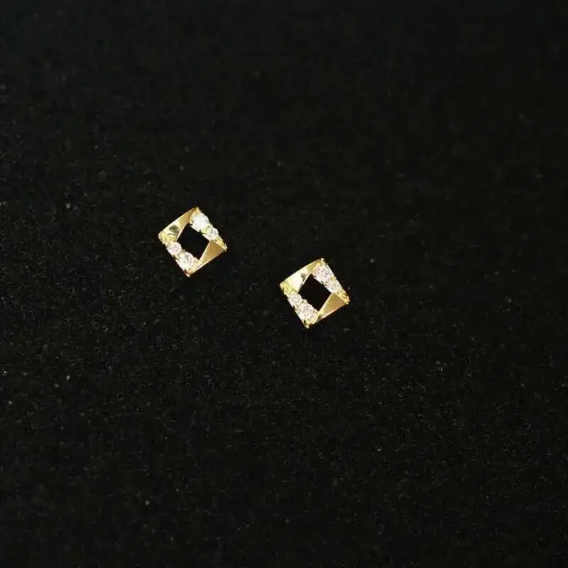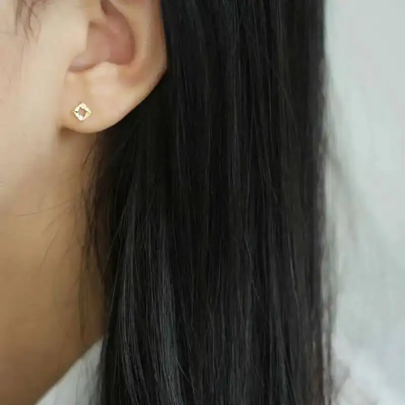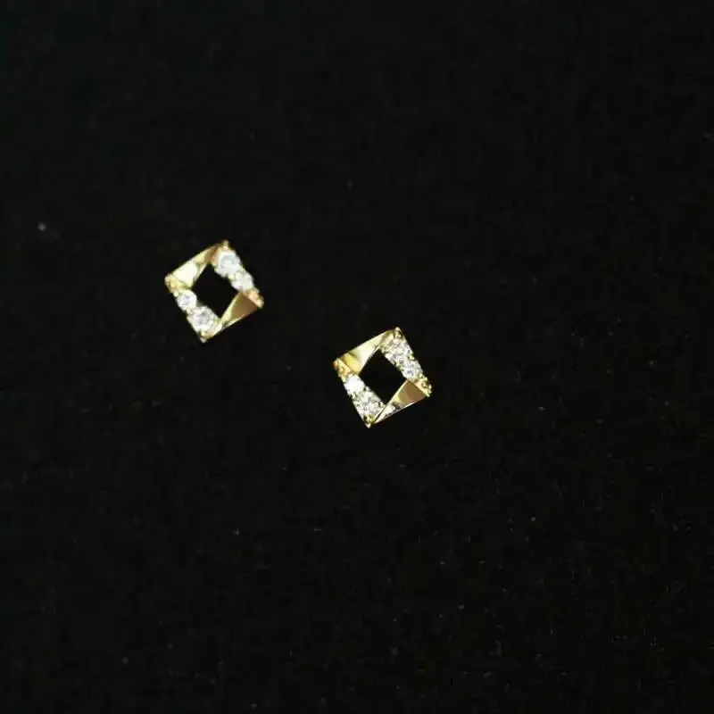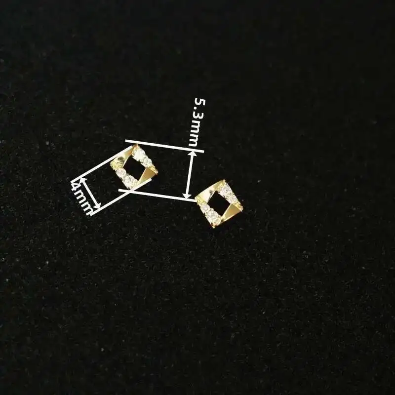 9k Diamond Crystal Stud Earring for Women, Geometric Stud, Solid Gold, Mini, Dainty, Simple Style, Gift, kj522