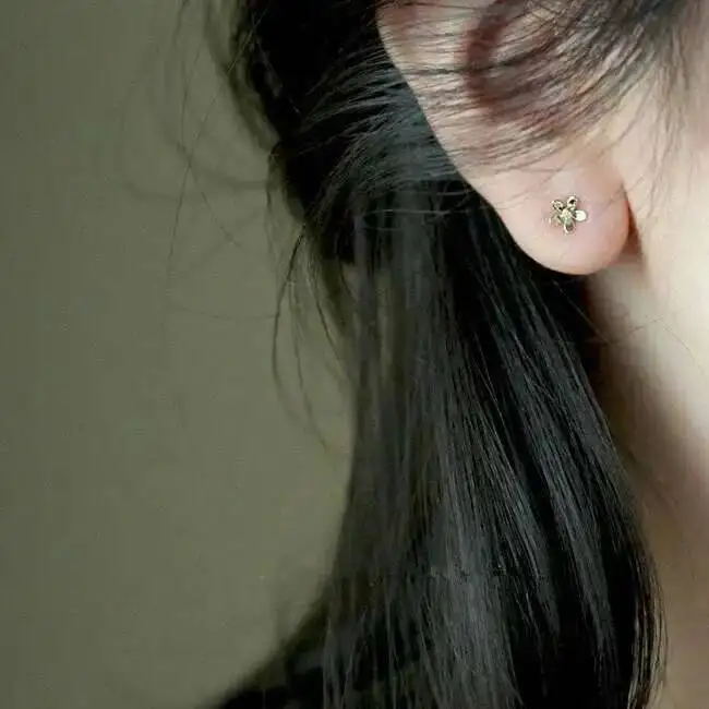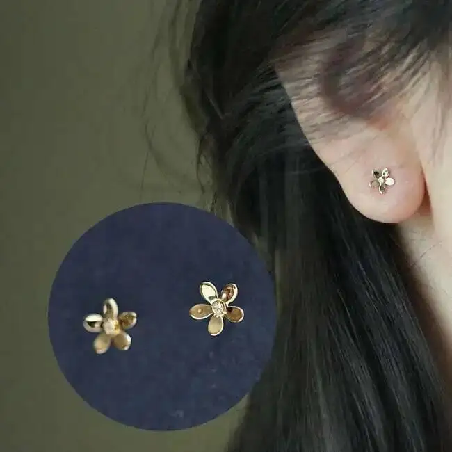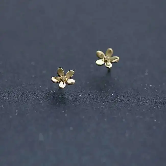 9k Gold Daisy Flower Crystal Stud Earring, Super Dainty, Mini, Simple Design, Wedding, Girls, Kids Gift, kj191