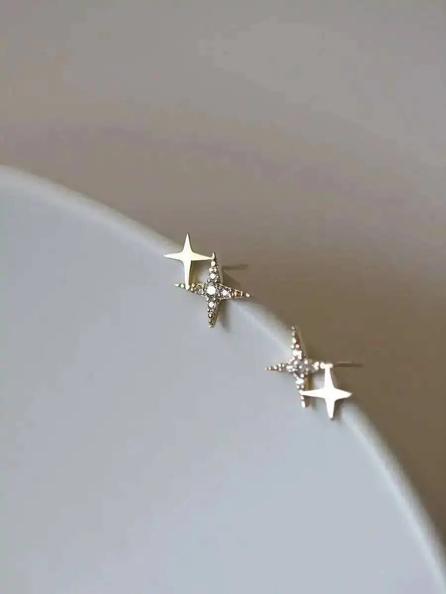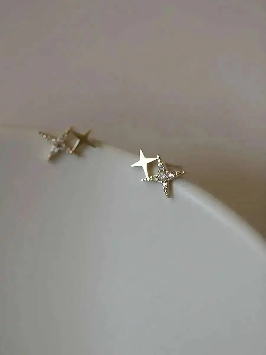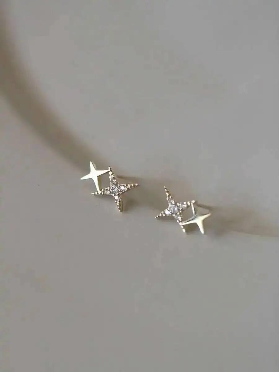 9K Gold Mini Shiny Star Earrings, Simple & Elegant, Hypoallergenic, Trendy 2025 Wedding Fashion Accessories kj432