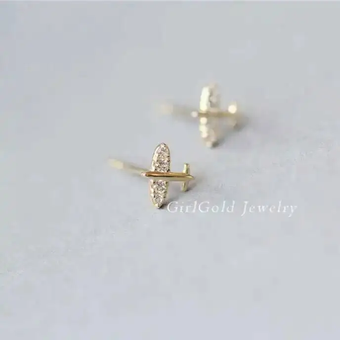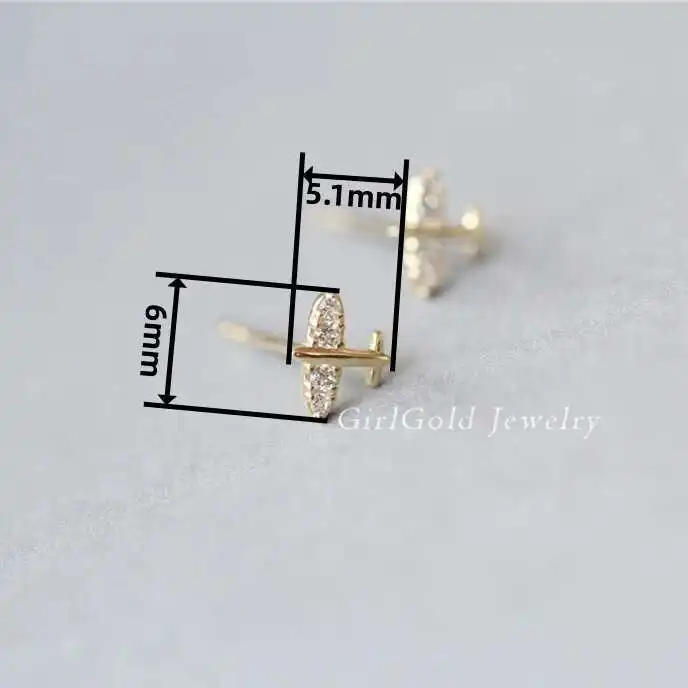 9K Solid Gold Mini Airplane Stud Earrings, Hypoallergenic, Elegant Simple Design, Trendy Fashion Accessory kj528