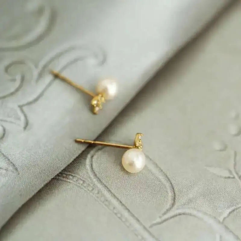 9K Solid Gold Stud Earrings, Minimalist Hypoallergenic Design, Natural Freshwater Pearl, Cute Rabbit Charm, Dainty kj14