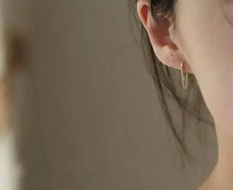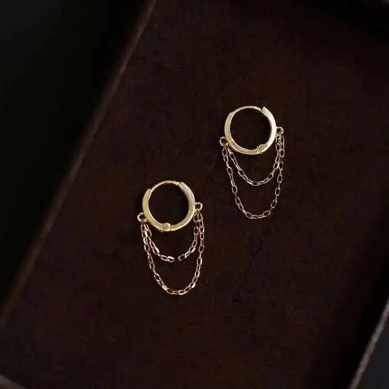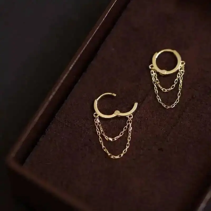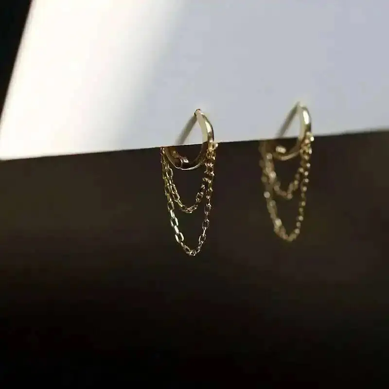 Double Dangle Drop Earring, Minimal Jewelry, Solid Gold Tassel Chain, New Style, 2022, 9K, kj235
