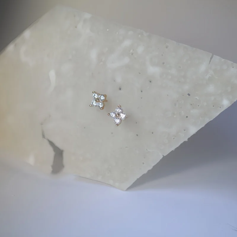 GOLDtutu 14K Real Gold Mini Stud Earrings Hypoallergenic CZ Jewelry Set for Women, Fashion Gift