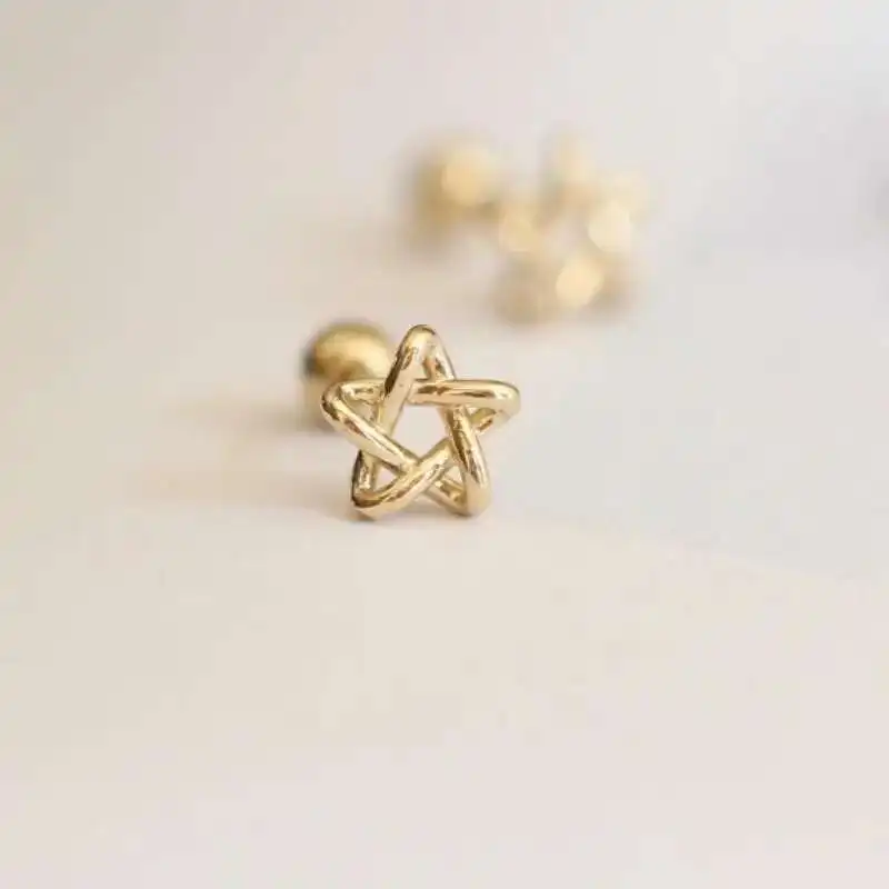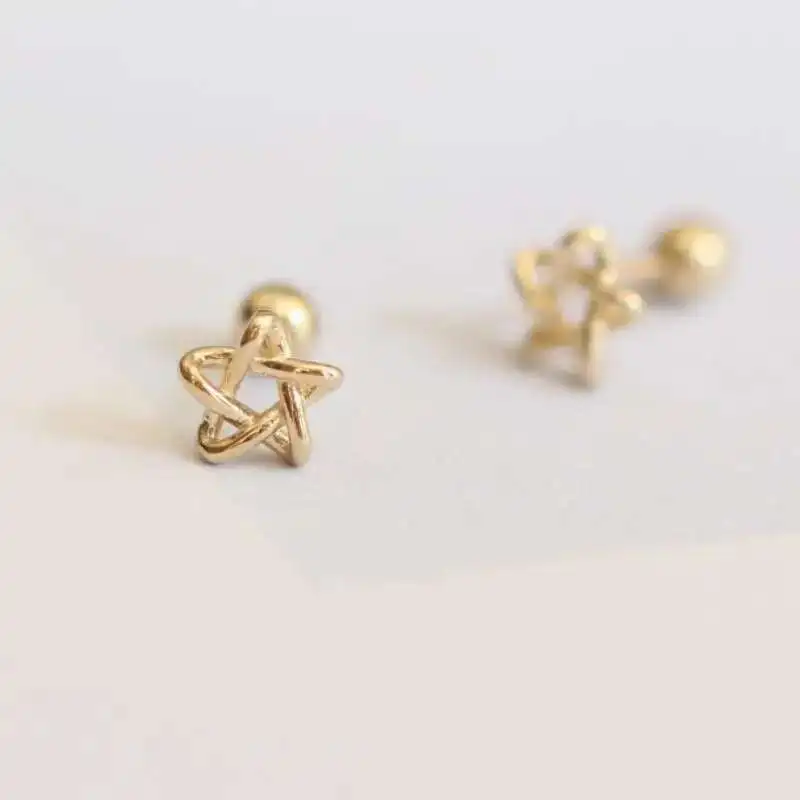 GOLDtutu 9k True Gold Star Stud Earring, Fine Jewelry, Dainty Small Earrings, High Quality, 2022 New, kj220