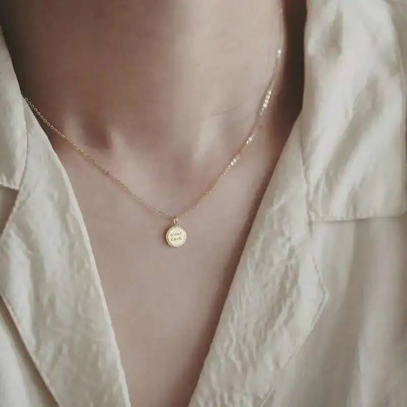 Pure 14K Gold Coin Necklace, Goodluck Transfer Chic Pendant, Lucky Coin, kj206