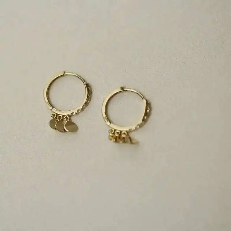 Pure 9K Department Round Gold Piece Ear Buckle Small Zircon Ring, Temperament Style, Exquisite, kj335