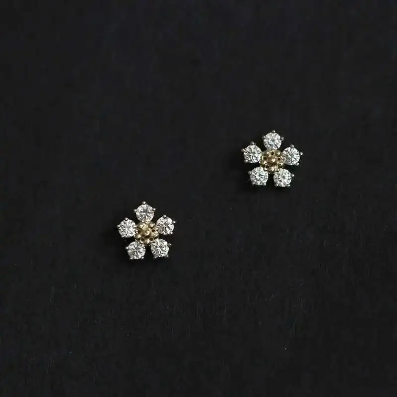 Pure 9K Gold Jewelry Earrings for Women, Five Diamond Flower, 2020, kj237
