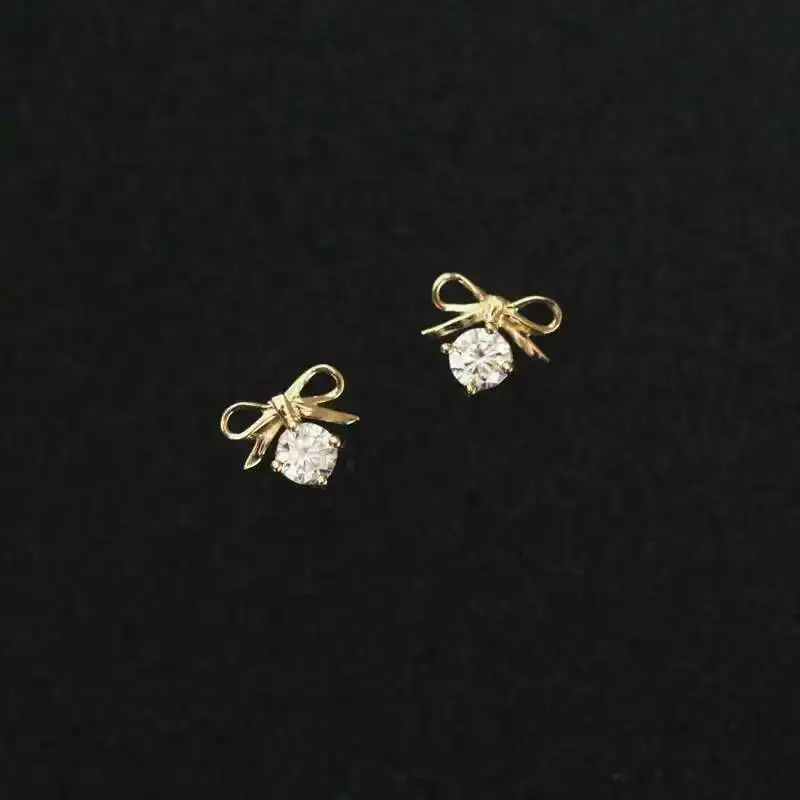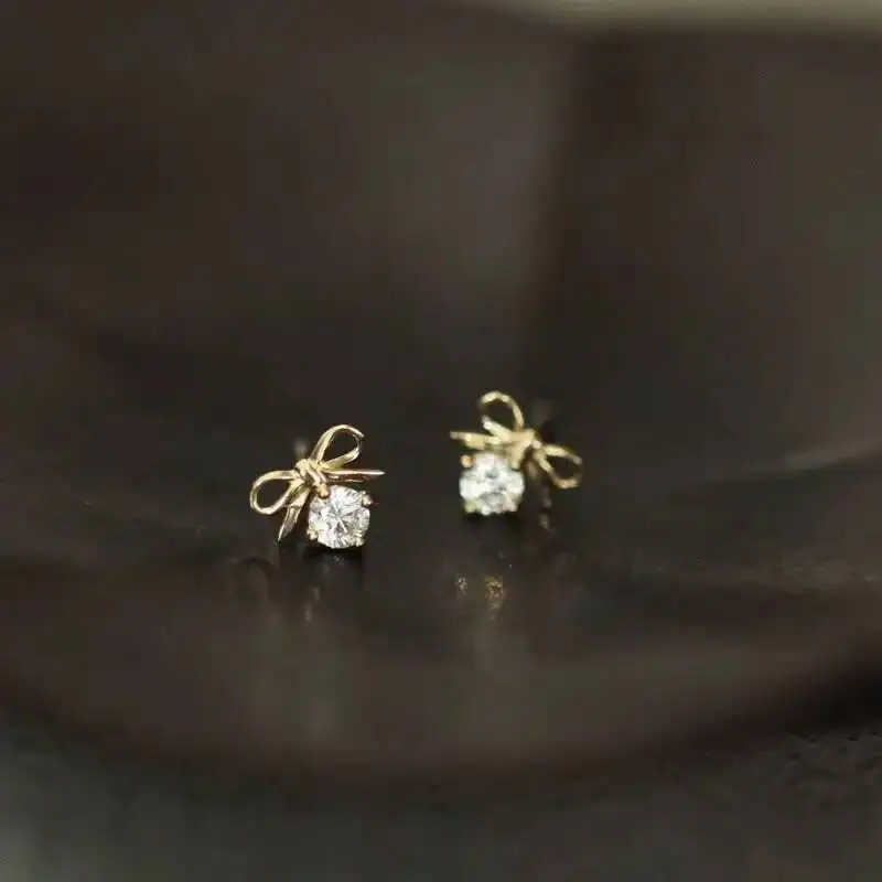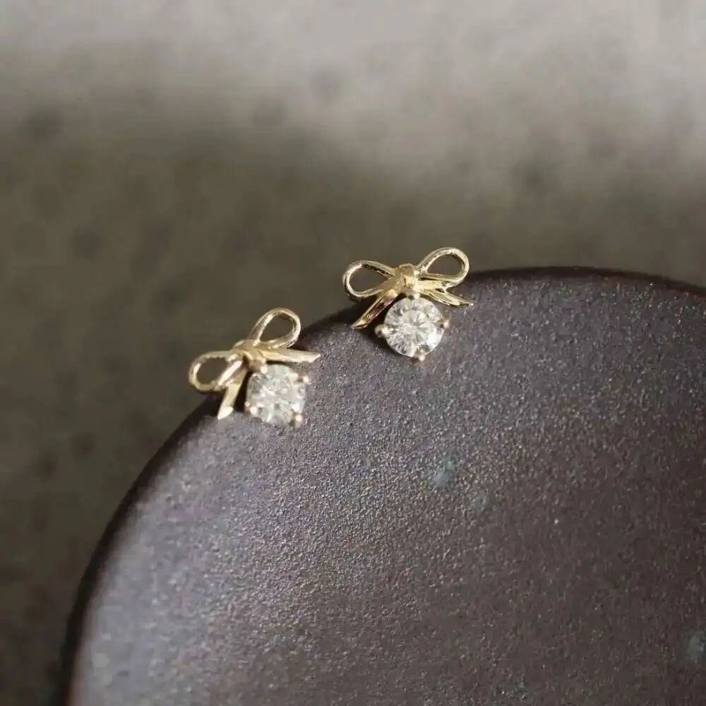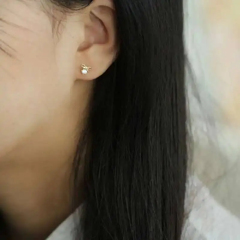 Be the first to review “Solid Gold Stud, Dainty Bow Dangle Drop Crystal Earring, Simple Jewelry, Minimal Women Gift, 9K Real, kj94”