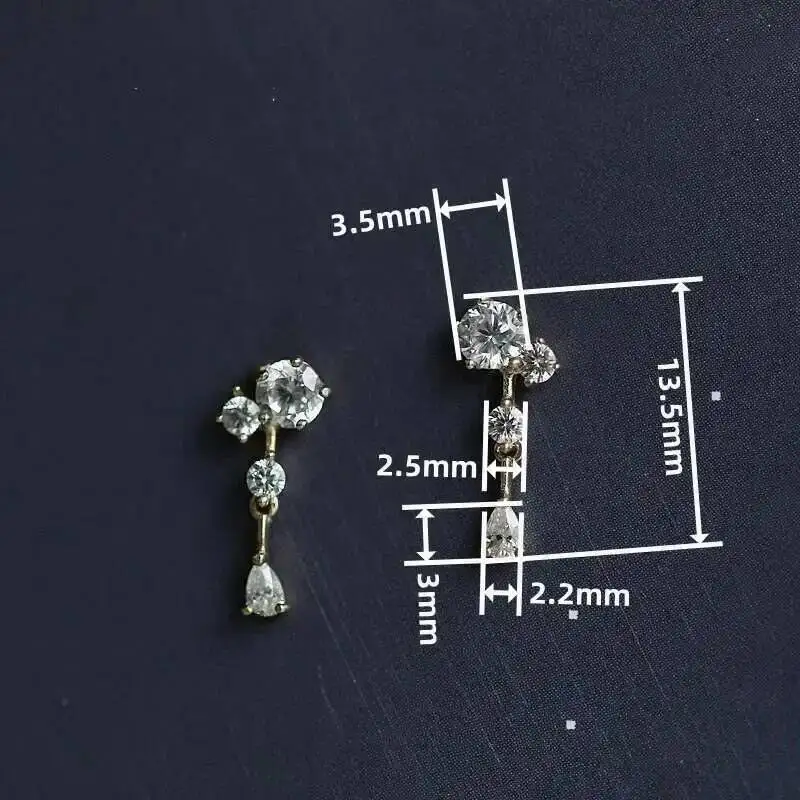 Size: 5mm x 14mm earring needle 9mm x 0.64mm